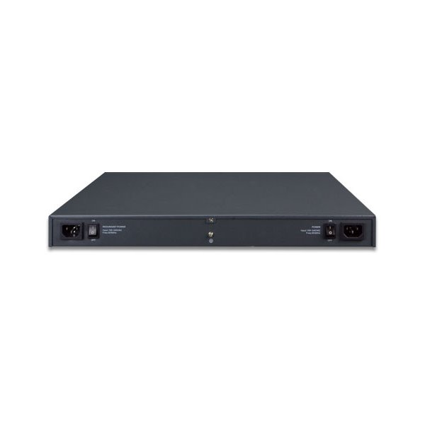 Zařízení se spravuje WEB prohlížečem nebo pomocí protokolu SNMPv3 s možností zabezpečení SSH. Pro vyšší provozní spolehlivost lze zařízení napájet duálně dvěma zdroji AC 100-240 V (redundantní napájení).