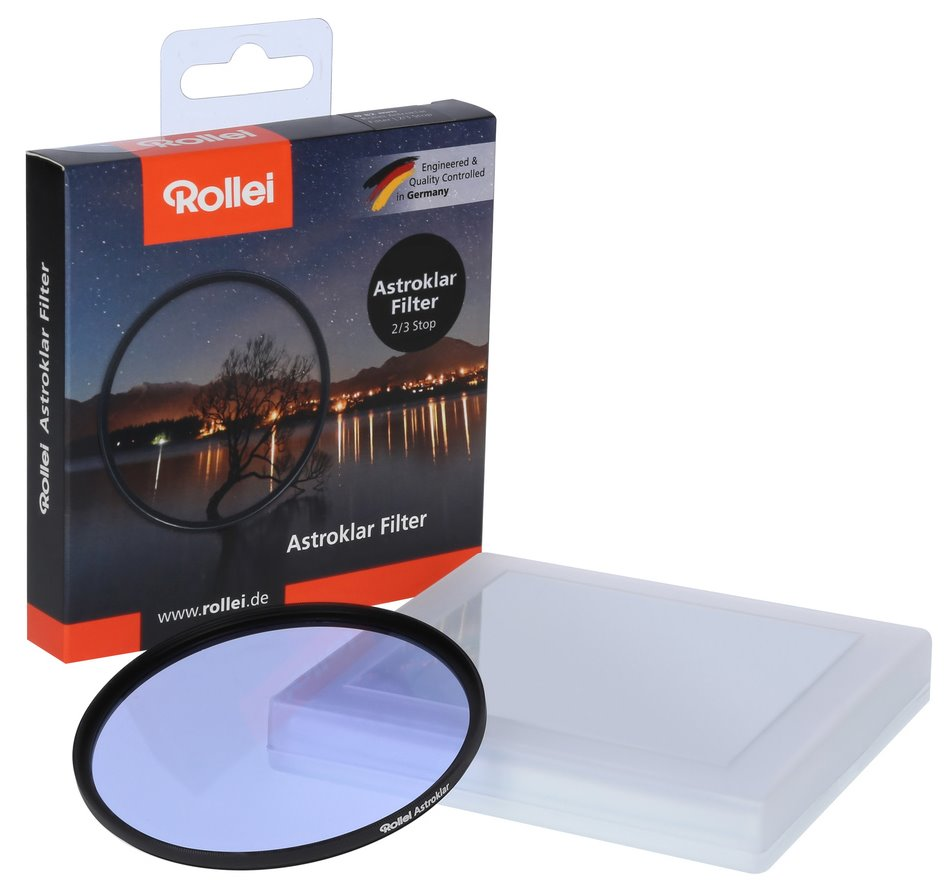 Filtr Rollei Astroklar je zvláště vhodný pro astrofotografii a pro fotografování krajiny v noci. Účinně snižuje světelné znečištění, které má rušivý vliv při nočním fotografování. Vyroben je z vysoce kvalitního optického skla s vrstvou, která odpuzuje nečistoty, olej a vodu.