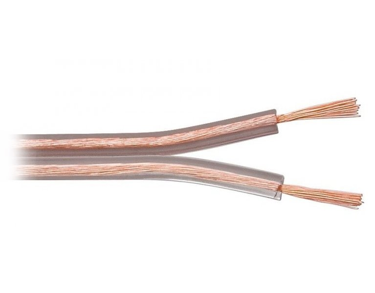 Dvoužilový kabel na propojení reprosoustav ze 100% mědi v transparentní izolaci. Je určen pro přenos audio signálů v pásmu 20 Hz až 20 kHz, přenos výkonu do 100 W (pro délku 5 m) a napětí do 50 V. Průměr kabelu je 2 x 0,75 mm2.