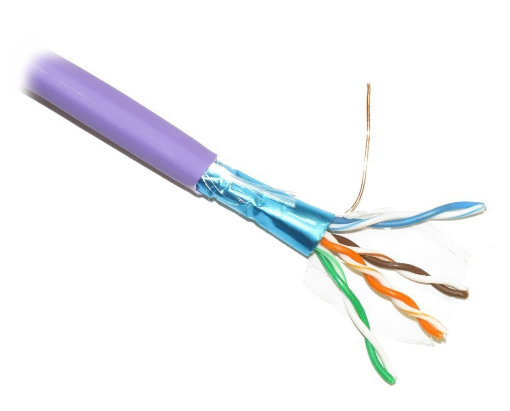 Stíněný FTP kabel typu "drát" kategorie Cat5e, 4pár, LS0H, třída Dca, fialový, cena za 1 m.