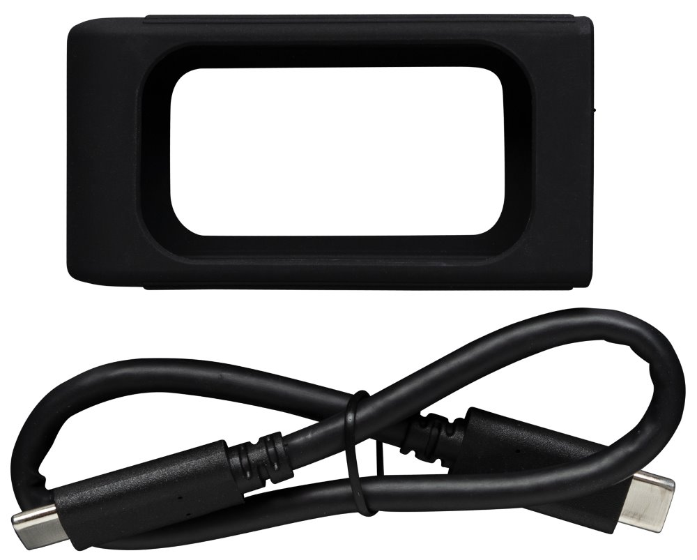 Součástí balení je USB-C kabel a gumový ochranný kryt.