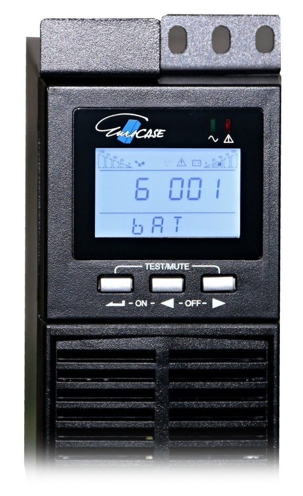 Online záložní zdroj se sinusovým výstupem a komunikačním rozhraním USB i RS-232. Na čelním panelu jsou k dispozici 3 ovládací tlačítka a informační displej.