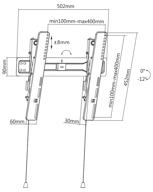Nástěnný držák pro ploché obrazovky s úhlopříčkou od 32" do 55" a nosností až 35 kg umožňuje náklon až 12°. Držák je vhodný pro obrazovky, které odpovídají standardům VESA 100 × 100 až 400 × 400 mm. Veškerý instalační materiál je součástí balení.