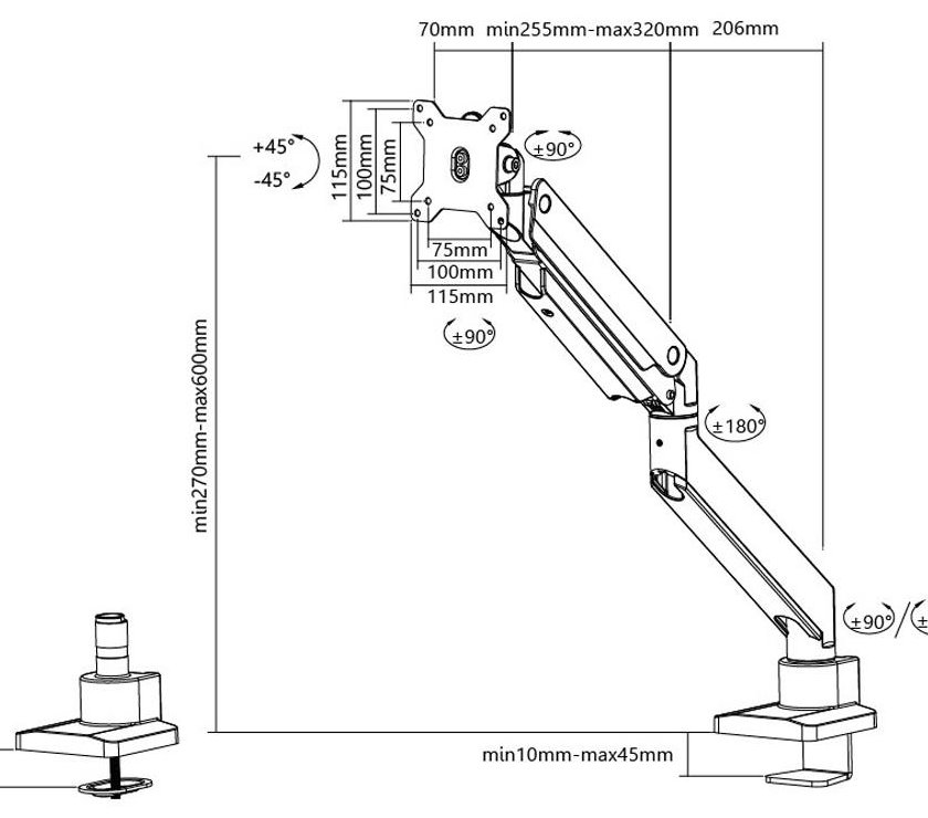 Flexibilní stolní VESA držák pro plochý LCD monitor o velikosti 10" až 32" a maximální nosnosti do 16 kg. Univerzální technologie naklápění, otáčení a rotace umožňuje optimální nastavení. Veškerý instalační materiál je součástí výrobku.