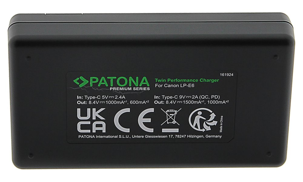S rychlonabíječkou Patona DUAL lze nabíjet současně 2 baterie najednou, bez ohledu na to, zda mají obě baterie stejnou kapacitu. Nabíječky jsou vyráběny dle nejvyšších evropských standardů kvality a vyznačují se extrémně dlouhou životností. Nabíječku lze napájet skrze USB typ C port.