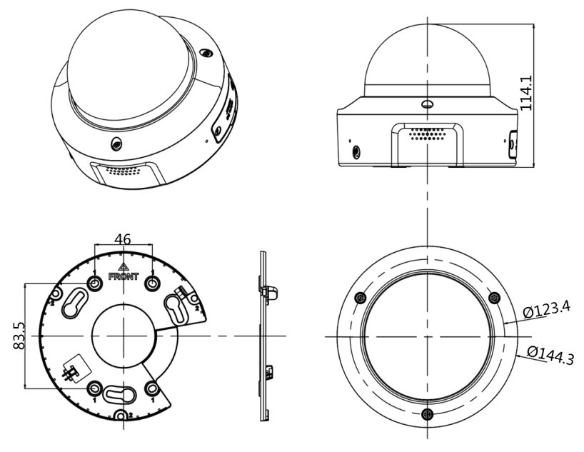 Rozhraní: 1× RJ-45, 1× RS-485, 1× kompozitní video výstup (pouze debug), 2× alarm vstup, 2× alarm výstup, 1× audio vstup, 1× audio výstup