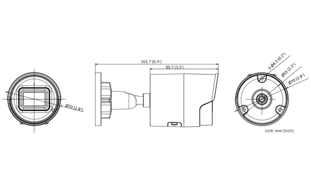 Objektiv: f = 2,8 mm, pevný, úhel záběru horizontálně 103°, vertikálně 55°, diagonálně 123°