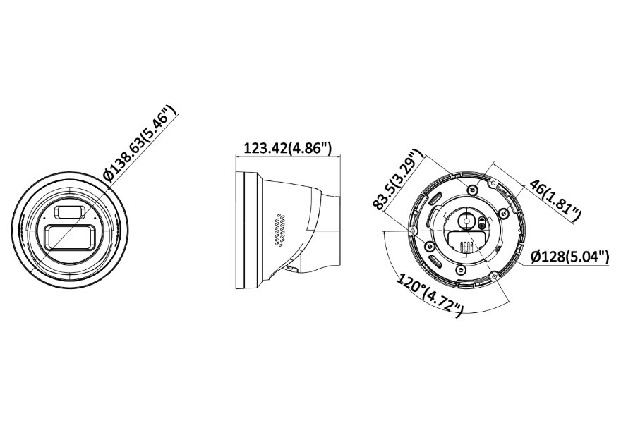 Rozhraní: 1× RJ-45, 1× alarm vstup, 1× alarm výstup, 1× audio vstup, 1× audio výstup, 1× RS-485, 1× DC 12 V výstup