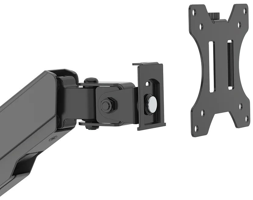Výškově nastavitelná pracovní stanice na zeď pro LCD monitory o velikosti 17" až 32", klávesnici a myš, kterou lze používat vsedě i vestoje. VESA držák unese obrazovky o hmotnosti až 9 kg (zakřivené až 6 kg), zatímco polička na klávesnici disponuje nosností až 1 kg. Všestranná technologie naklápění (70°), rotace (360°) a otáčení (180°) umožňuje optimální nastavení. Pro zajištění rychlé změny polohy je vybaven plynovou pružinou. Držák je vhodný pro obrazovky, které odpovídají vzoru otvorů VESA 75 × 75 nebo 100 × 100 mm.
