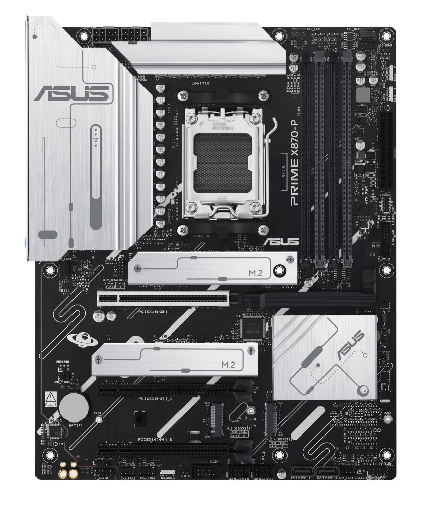 Základní deska ASUS PRIME X870-P je navržena pro stavbu univerzálně zaměřených PC pro práci i multimediální zábavu. Umožní vám naplno využít potenciál moderních procesorů AMD Ryzen série 9000/ 8000/ 7000 a pomocí dostupných funkcí dokonale vyladit celý systém k vaší spokojenosti. Inteligentní řešení v podobě AI Cooling II se podílí na efektivních chlazení, respektive na tichém chodu ventilátorů.