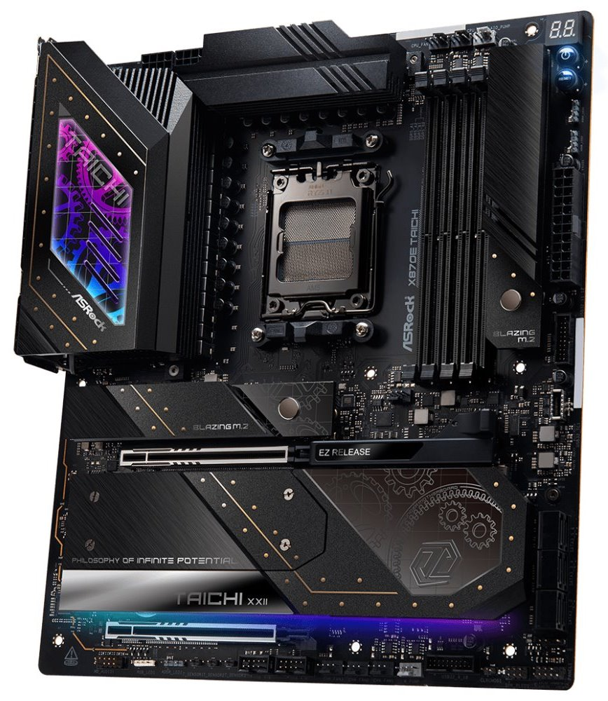 Extra velký chladič M.2 z hliníkové slitiny zajistí efektivní chlazení disku M.2 SSD. Kompozitní chladič VRM obsahuje ventilátor a tepelnou trubici pro efektivní odvod tepla. Na své si přijdou také kutilové, kterým provedení desky poskytuje dostatek možností pro jejich stavební záměry. Základní deska ASRock X870E Taichi dbá také na řádnou konektivitu.
