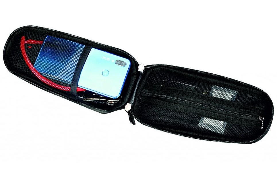 Vodotěsné pouzdro s uchycením na středovou tyč kola pomocí nastavitelných suchých zipů zajistí dostatek úložného prostoru pro mobilní telefon do 6,7", ale i osobní věci. Do pouzdra se vejde nářadí, náhradní duše anebo bezdrátová powerbanka, kterou můžete za jízdy nabíjet váš mobil. Vysoce odolné provedení pouzdra i zipů se postará o 100% ochranu jeho obsahu i za silného deště.