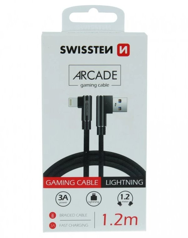 Datový a nabíjecí USB na Lightning kabel s textilním opletením nabízí konektory otočené o 90° do tvaru písmene L pro bezpečnější manipulaci s telefonem během nabíjení. Konektor ve tvaru L snižuje možnost zalomení kabelu nebo poškození konektoru telefonu, díky tomu je praktický i při nabíjení telefonu v držáku v autě nebo při dobíjení v uzavřeném pouzdře z powerbanky. Kabel navíc kromě přenosu dat rychlostí 480 Mb/s podporuje také nabíjení proudem až 3 A.