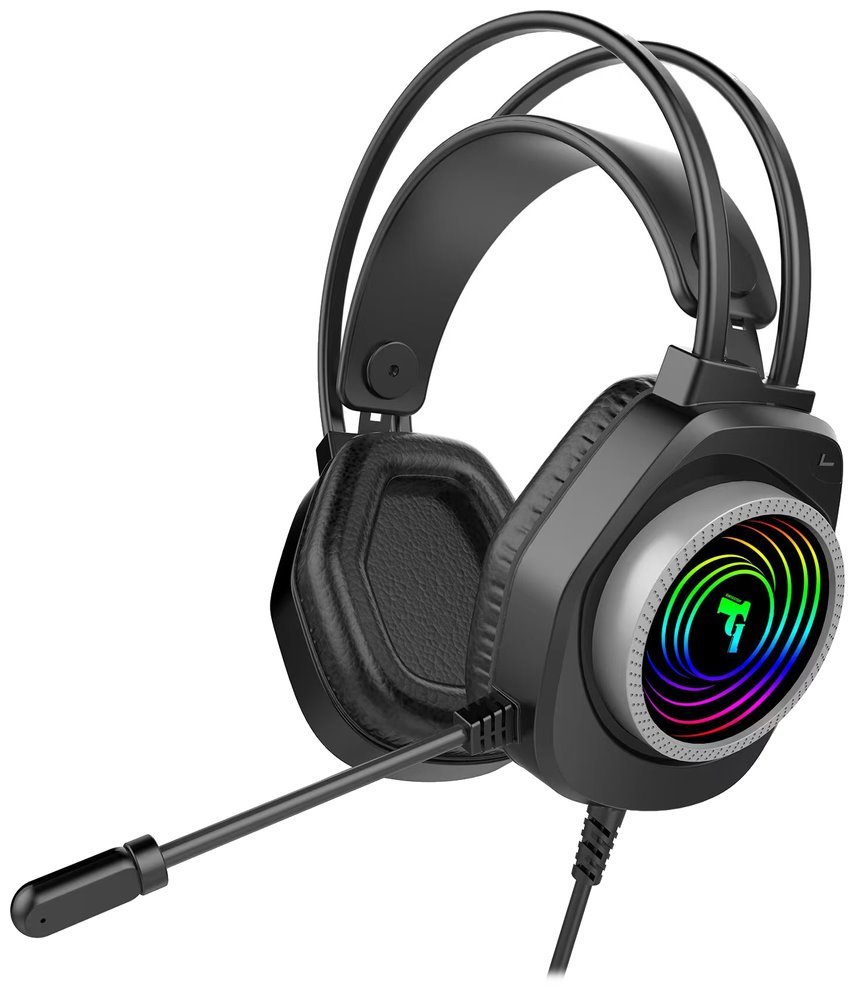 Herní náhlavní headset s RGB osvětlením poskytuje díky 50 mm velkým měničům skvělý zvukový přednes. Stejně tak flexibilní mikrofon poskytuje křišťálově čistý přenos, který je základem kvalitní hlasové komunikace. Připojení k počítači či notebooku je realizováno skrze USB konektor a 3,5mm jack. Díky univerználnímu koženému náhlavníku sedne na hlavu prakticky každému hráči.