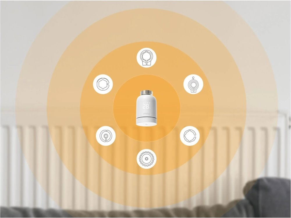 Chytrá termostatická hlavice umožňuje přesné ovládání teploty s využitím ZigBee 3.0 protokolu. Tento produkt poskytuje energeticky efektivní provoz, snadnou instalaci díky 6 adaptérům a širokou kompatibilitou s různými typy radiátorů. Nastavená teplota je zobrazena na LED displeji, navíc je možné aktivovat dětskou pojistku, která zabrání nežádoucím změnám teplot. Teplotu lze nastavit i manuálně pomocí otočné přední strany. V kombinaci se službou Amazon Alexa můžete nastavit požadovanou teplotu v místnosti jednoduše hlasovým příkazem. V kombinaci s mobilní aplikací IMOU Life přináší možnost dálkového ovládání a dalších chytrých funkcí. O napájení se starají dvě AA baterie (součástí balení).
