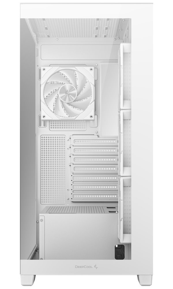 PC skříň DEEPCOOL CG580 4F v jednokomorovém provedení, které nejenom pojme výkonné komponenty, ale také je dá patřičně na odiv. Díky prosklené bočnici a přednímu panelu poskytuje panoramatický a nepřerušovaný pohled na vnitřní uspořádání, a tím i stylový vzhled celé skříně. Konstrukce nabízí praktickou přihrádku na základní desku, což přispívá k čistému a přehlednému uspořádání.