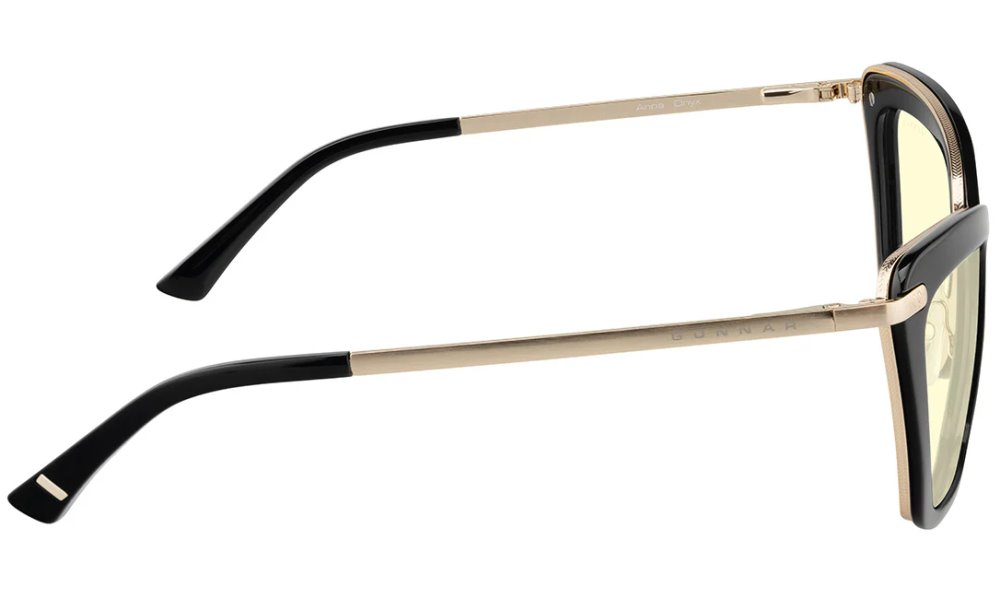 Počítačové brýle GUNNAR ANNA ONYX, které jsou vhodné pro kancelářskou práci i hraní her. Jantarová skla disponují antireflexní vrstvou, která potlačuje nežádoucí odlesky a podporuje komfortní viditelnost obsahu na displeji monitoru či TV. Jantarová skla blokují 65 % modrého světla a 100 % ultrafialového záření, čímž snižují námahu oči a efektivně chrání před negativními důsledky dlouhodobého sledování displeje, jako je únava nebo bolest hlavy.