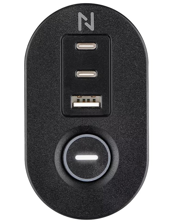 V horní části zásuvky najdete dva USB-C porty s výkonem 20 W a podporou rychlého nabíjení Power Delivery (PD), které zajistí, že vaše mobilní zařízení budou vždy připravena k použití. Dále je k dispozici jeden USB port s výkonem 18 W. Díky snadné instalaci pomocí svorky a 1,4 m dlouhému napájecímu kabelu se VOLT DS22-840BL6 přizpůsobí jakémukoliv kancelářskému nebo domácímu prostředí.