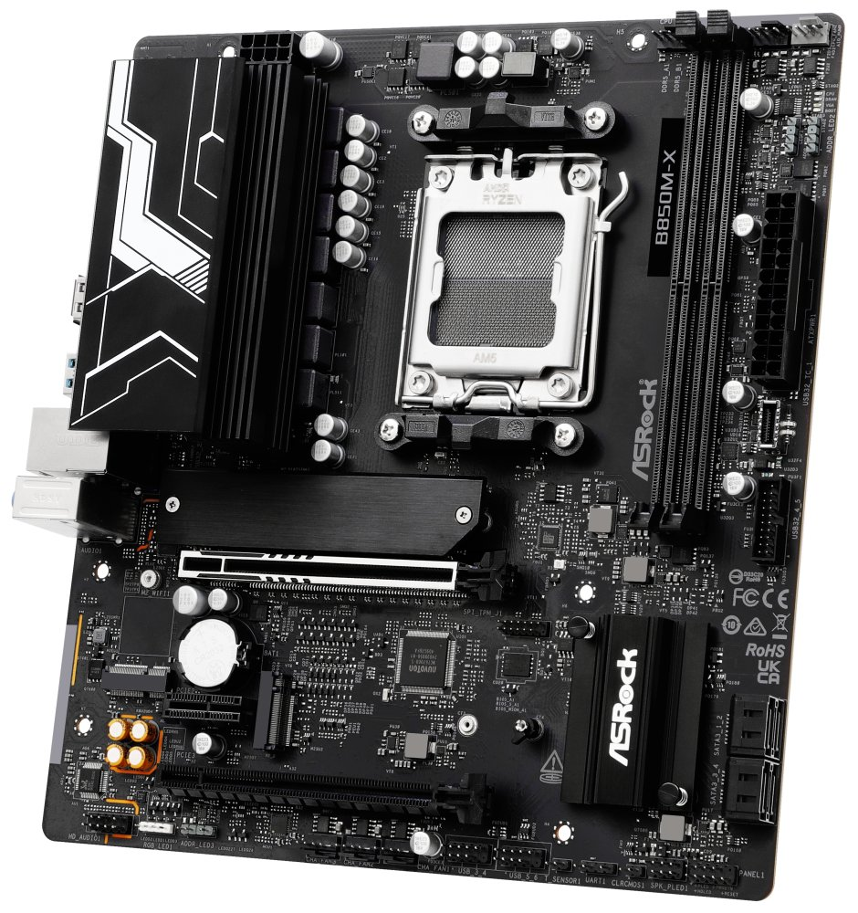 Základní deska ASRock B850M-X R2.0 je navržena pro stavbu moderního herního nebo multimediálního PC. Podporuje operační paměť DDR5 i moderní procesory AMD Ryzen série 9000, 8000 a 7000, které dokážou běžet na plné obrátky a bez kompromisů zvládnu vysokou provozní zátěž spojenou s gamingem i profesionální prací. O jejich spolehlivý chod se postará pokročilý 6+1+1fázový systém napájení s robustními komponenty a technologií Dr. MOS. Deska je tak vhodná nejenom pro stabilní výkon, ale také přetaktování. Samozřejmostí je podpora ultra rychlého úložiště.