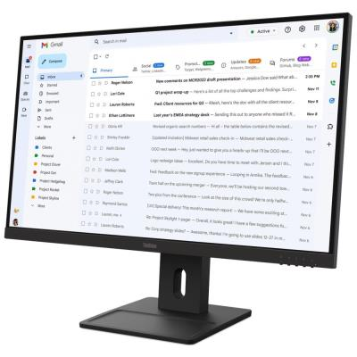 Monitor je vybaven ergonomickým stojanem s možností nastavení výšky, otočení, natočení a náklonu pro optimální pracovní polohu. Antireflexní úprava povrchu snižuje odlesky a technologie Natural Low Blue Light chrání oči při dlouhodobé práci.