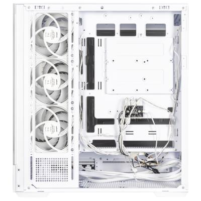 Skříň podporuje všechny standardní formáty základních desek včetně ATX, mATX a Mini-ITX a nabízí rotovatelné PCI sloty pro flexibilní instalaci grafických karet ve vertikální nebo horizontální poloze. Pokročilý ARGB systém s kontrolním hubem umožňuje vytváření různých světelných efektů.