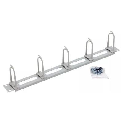 19" vyvazovací panel 1U s šesti velkými háčky a oválnými otvory. Vhodný pro nižší zatížení.