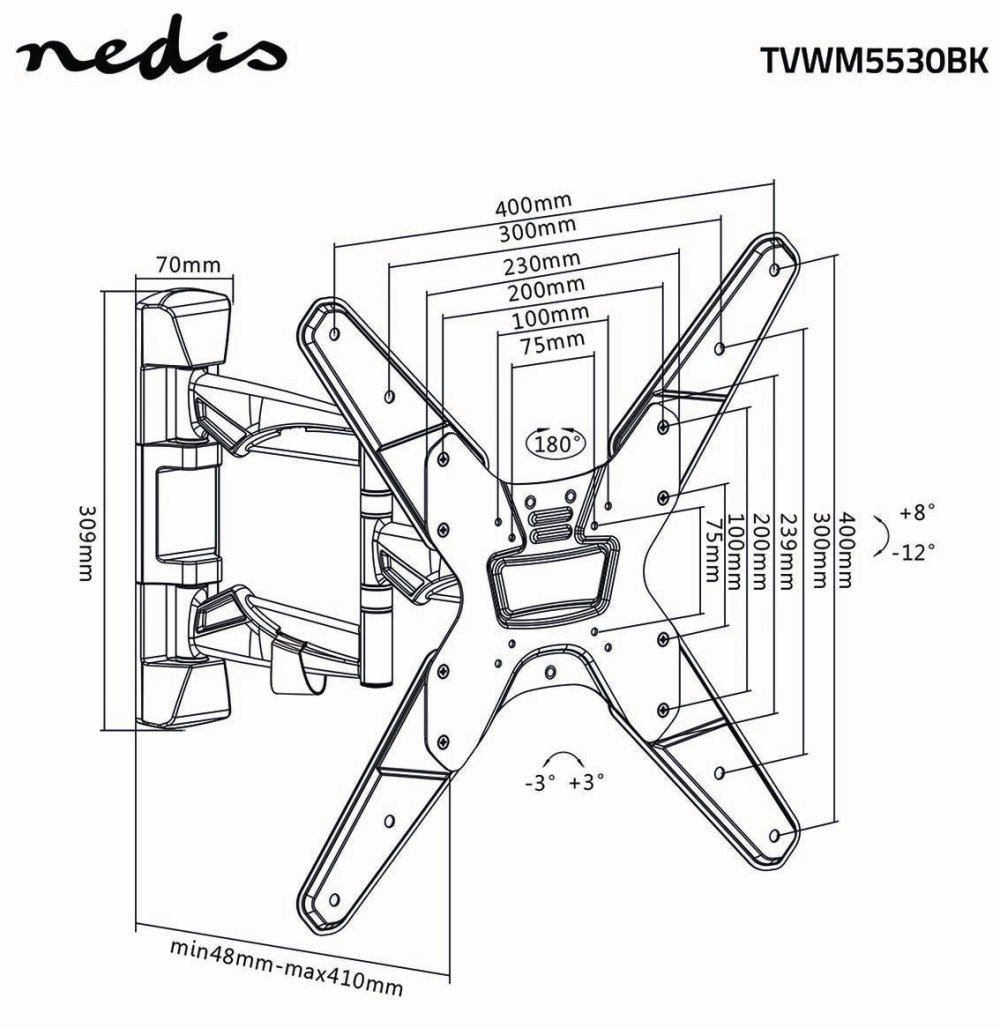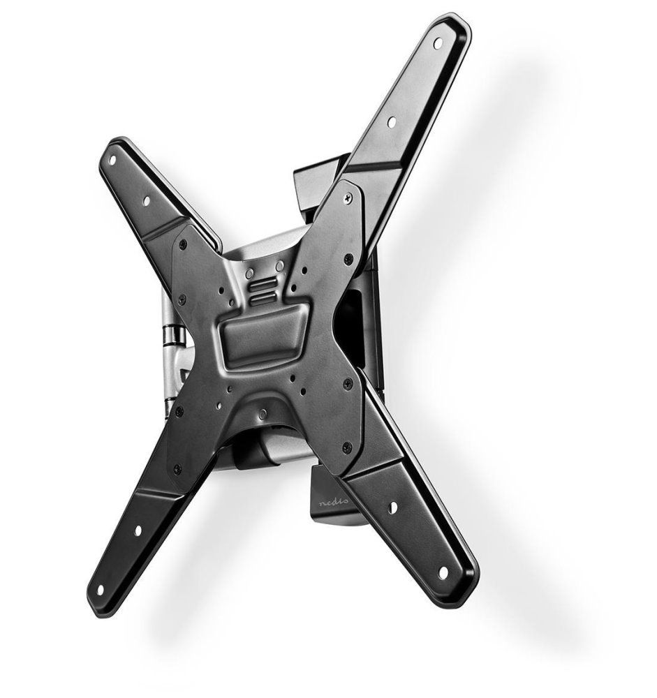 Tento profesionální nástěnný držák kombinuje pevnou ocelovou konstrukci s luxusními hliníkovými rameny a nabízí kompletní pohyblivost vašeho televizoru. Díky třem otočným bodům umožňuje otáčení až 180° a nastavení vzdálenosti od stěny v rozsahu 48–410 mm. Držák je vybaven funkcí naklápění o 20° pro optimální pozorovací úhel a vyrovnáváním až o 3° pro perfektní horizontální polohu.