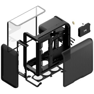 Podpora všech standardních formátů desek od ITX po E-ATX, 7 horizontálních rozšiřujících slotů, úložiště pro 2× 2,5" a 1× 3,5" disky. Strukturální PSU kryt s integrovanými úchytnými body pro snadnou správu kabelů.