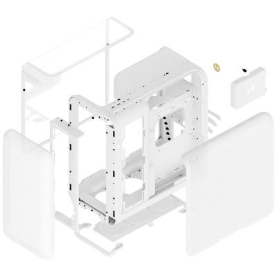Podpora všech standardních formátů desek od ITX po E-ATX, 7 horizontálních rozšiřujících slotů, úložiště pro 2× 2,5" a 1× 3,5" disky. Strukturální PSU kryt s integrovanými úchytnými body pro snadnou správu kabelů.