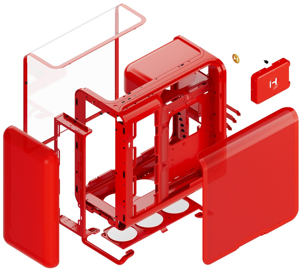 Podpora všech standardních formátů desek od ITX po E-ATX, 7 horizontálních rozšiřujících slotů, úložiště pro 2× 2,5" a 1× 3,5" disky. Strukturální PSU kryt s integrovanými úchytnými body pro snadnou správu kabelů.