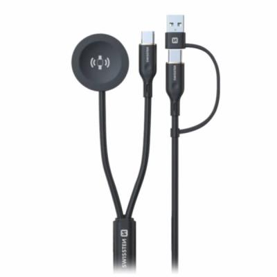 Praktické řešení pro nabíjení hodinek Samsung Galaxy Watch všech generací od Active 1 až po nejnovější Galaxy Watch 7 a Ultra. Díky odnímatelné redukci USB/USB-C lze kabel snadno připojit k jakékoliv nabíječce. Při použití USB-C konektoru nabízí výkon až 60 W pro rychlé nabíjení telefonů, tabletů nebo notebooků, zatímco hodinky nabíjí výkonem 2,5 W.