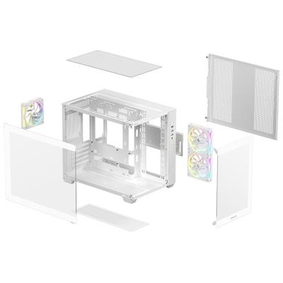 Skříň je vybavena třemi předinstalovanými ARGB ventilátory – dva ventilátory FL série s reverzními lopatkami na boku a jeden standardní vzadu vytvářejí horizontální proudění vzduchu pro efektivní chlazení. Podporuje základní desky s konektory na zadní straně, které udržují kabely mimo dohled. Navzdory kompaktním rozměrům 420 × 285 × 368 mm nabízí podporu pro GPU do 410 mm, ATX zdroje do 200 mm a chladiče procesoru do výšky 164 mm.