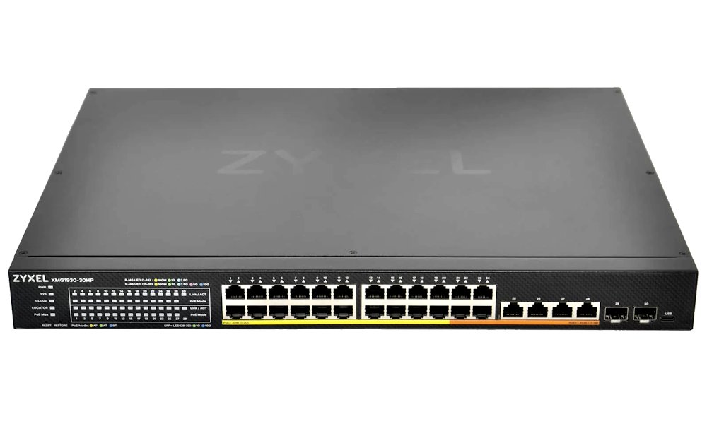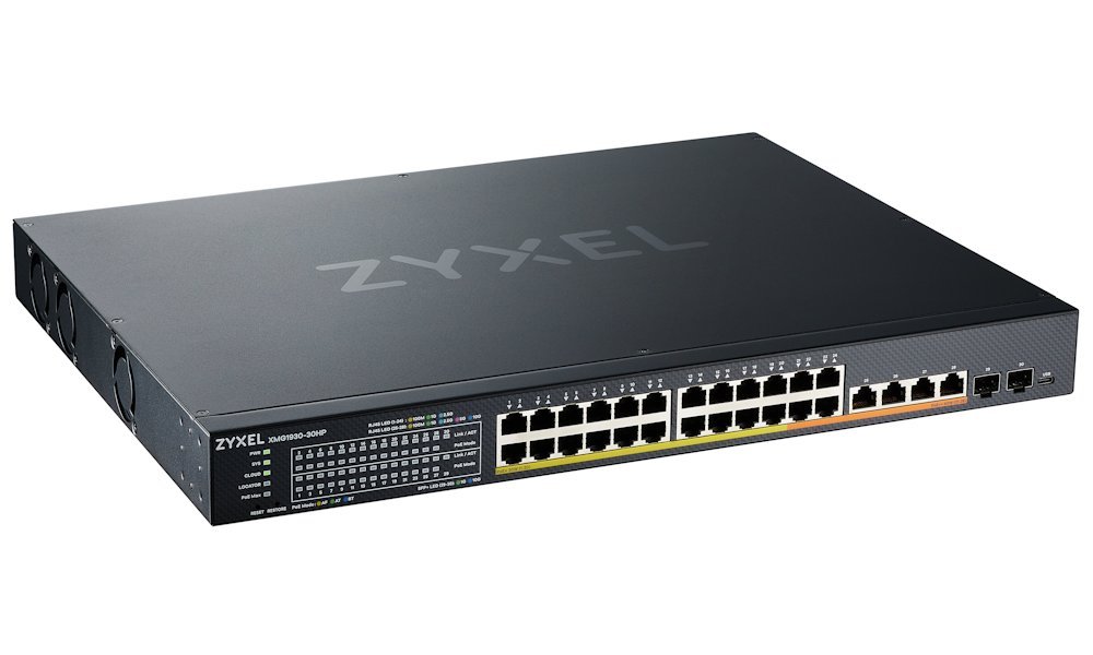 Switch XMG1930-30HP nabízí 24 portů s rychlostí 2,5G podle standardu IEEE 802.3bz a celkem šest 10G uplinků (4× RJ-45 + 2× SFP+) pro maximální flexibilitu při budování výkonné síťové infrastruktury. Každý port automaticky detekuje potřebnou rychlost připojeného zařízení a díky unikátnímu 5barevnému LED indikátoru máte přehled o aktuální rychlosti každého portu.