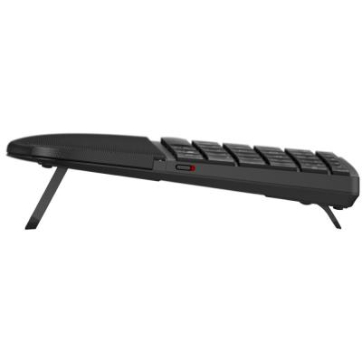 Klávesnice HP 685 Comfort nabízí špičkové ergonomické řešení pro náročné uživatele. Zvlněný tvar klávesnice v kombinaci s polstrovanou opěrkou ruky zajišťuje komfort i při celodenní práci. Unikátní systém tří nastavitelných úhlů psaní umožňuje přizpůsobit sklon klávesnice individuálním potřebám – od pozice bez sklonu (3,2°) přes neutrální sklon (6,7°) až po záporný sklon (8,08°).