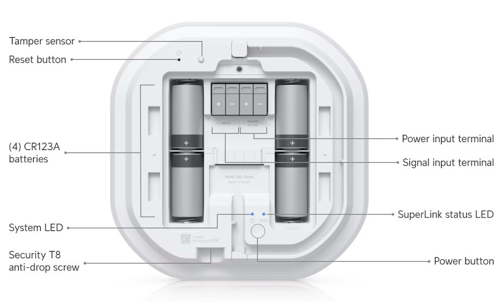 UniFi Siren představuje robustní bezdrátovou sirénu určenou pro venkovní použití v rámci ekosystému UniFi Protect. Díky proprietární technologii SuperLink s dosahem až 2 km komunikuje spolehlivě s ostatními zařízeními systému. Siréna nabízí flexibilní napájení buď z lithiových baterií CR123A, nebo pomocí DC 12–24V vstupu.
