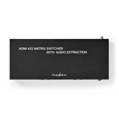 Profesionální HDMI maticový switch pro nezávislé přepínání čtyř zdrojů na dva displeje s integrovaným audio extraktorem.