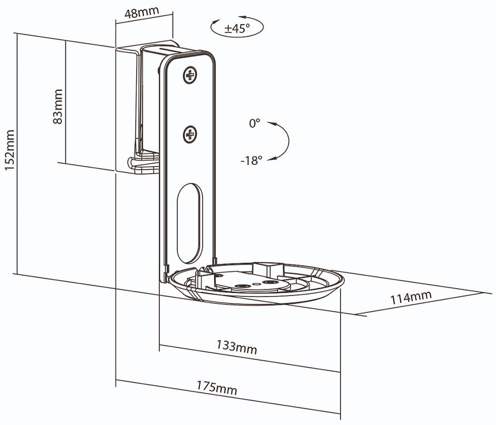 Tento specializovaný nástěnný držák umožňuje optimální umístění vašeho reproduktoru Sonos® Era 100 s možností přizpůsobení polohy podle akustických potřeb místnosti. Díky funkci otáčení až o 90° a nastavitelnému náklonu v rozsahu 0–18° můžete reproduktor nasměrovat přesně tam, kde potřebujete nejlepší zvukový zážitek.