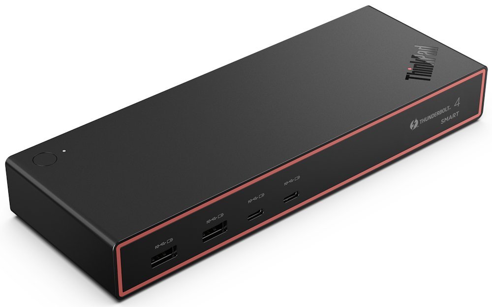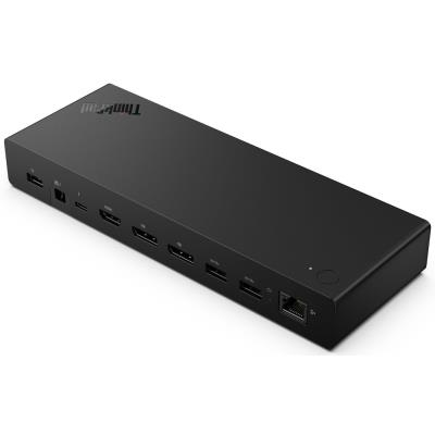 Gigabitový Ethernet port s rychlostí 2,5 Gb/s podporuje Wake-on-LAN, PXE Boot a MAC address pass-through na noteboocích ThinkPad. Thunderbolt 4 port s plnou funkcionalitou umožňuje propojení až čtyř 4K displejů při 60 Hz nebo jednoho 8K displeje.