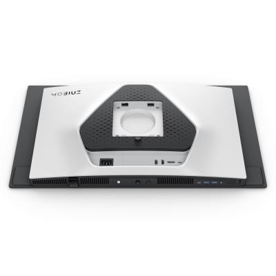 Stojan nabízí nastavení výšky v rozsahu 100 mm, náklon -5° až +15° a otáčení ±15°. Monitor podporuje montáž VESA 100 × 100 mm. USB-C port umožňuje přenos dat rychlostí 5 Gb/s, dva USB-A porty nabízejí nabíjení 4,5 W a USB-C downstream port 7,5 W.